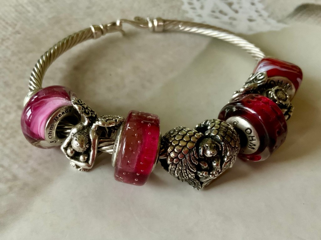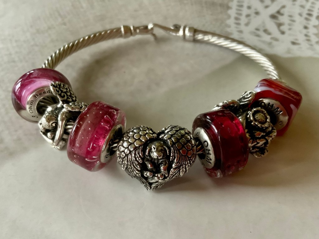 Puppy Love is also a gorgeously made bead for a commemorative bracelet. The angel wings are holding your puppy in eternal love and memory. A bangle with Thunderstorms, OHMMyGod, Cosmo, Puppy Love, Pinkberry, OHMMyGod 2.0 and Candy Crush.