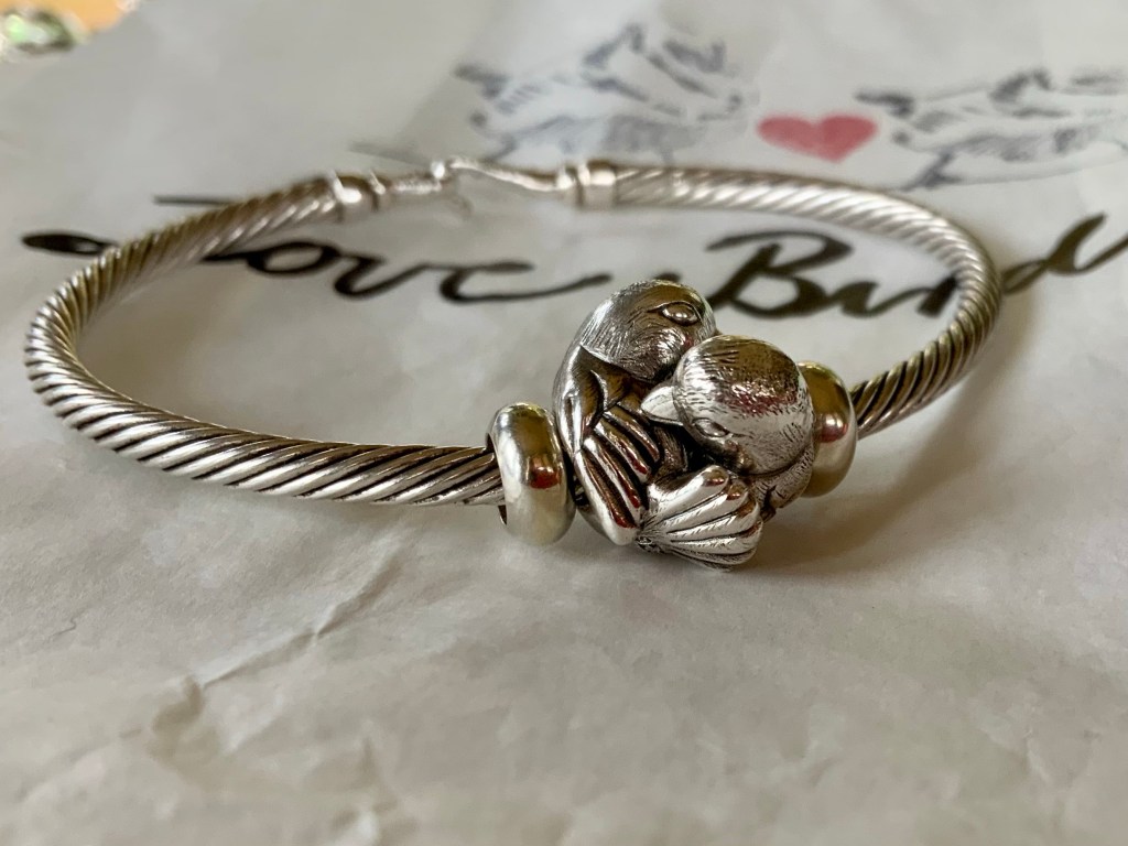 Love Birds are just made for a Valentines love bracelet! I love how they hug together! A bangle with OHM beads.