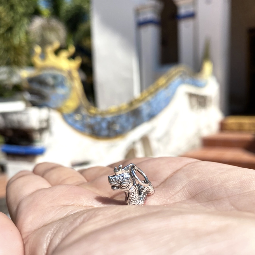 Naga is also a symbol of abundance. NAGA POD (NAGA PUNK’s BFF) from Wat Pho Si Thung, Udon Thani has beautiful scales perfectly aligned like kernels on a corn cob, with a pyramid-shaped comb that looks like a gnome hat.