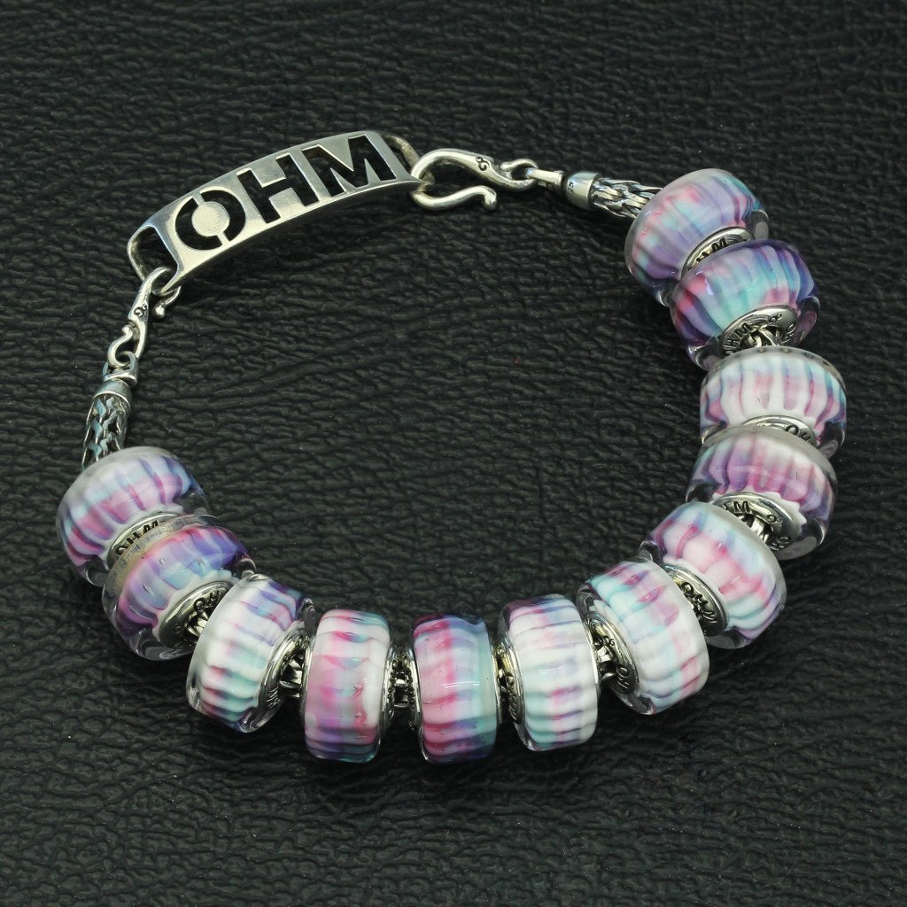 Take care when opening and closing the OHM S CLASP hooks. Load beads over the small OHM S CLASP hook, attach the clasp of your choice and secure the hook in place. Use the large OHM S CLASP hook to close and open your bracelet to the other end of the clasp.