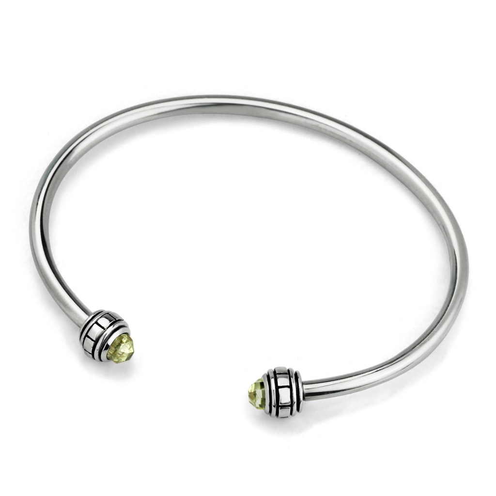 The OHM C BANGLE is an open bangle with end caps studded with colored CZ or stone. The caps unscrew to allow you to load up the bracelet design of your choice. An open “C” shape the bangle is slightly adjustable, and quite rigid. Choose SMALL if you wear a 6.7″ (17cm) or smaller and Choose MEDIUM if you wear an 7.1” (18cm) or larger. Available in multiple colors.