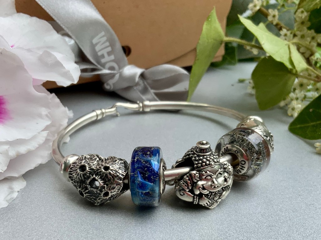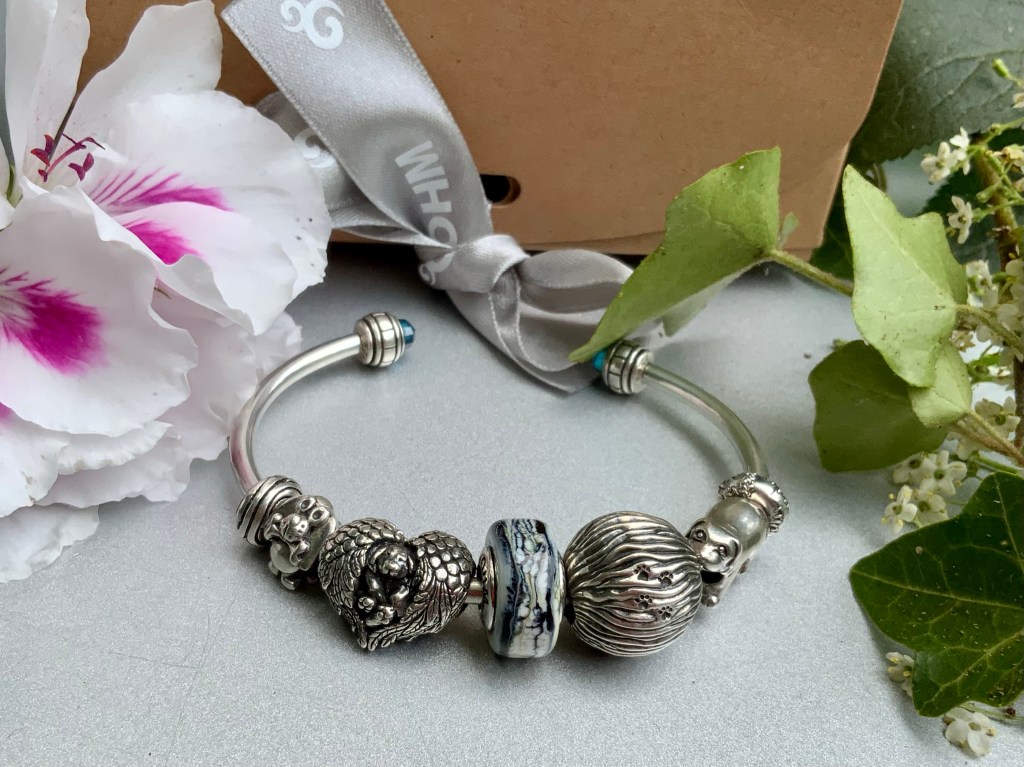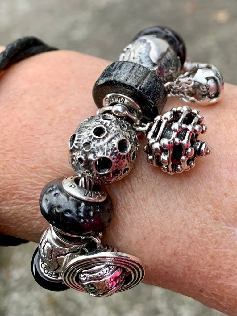 I put Saturn Secrets together with the other Space collection beads and a lot of Lunas on this bangle! They are Earth Eden, Quarter Luna, Mercury Muse, Luna 2.0, Saturn Secrets, Luna, Jupiter Jamboree, Luna 2.0, Venus Vibes, Crescent Luna and Mars Madhouse.