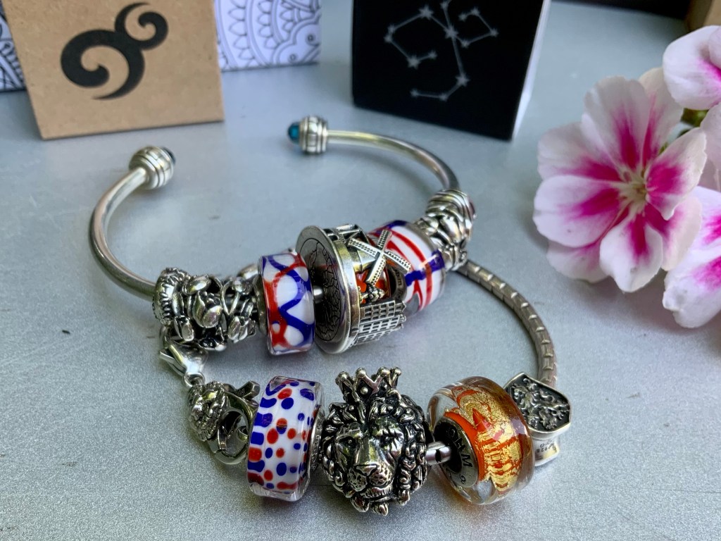 The crowned lion is pictured in the crest of the Netherlands. Je Maintiendrai (right) shows the Dutch lion with a sword. I made this bracelet with Lion Lock, Touched, King Of Liohm, King and Je Maintiendrai. Stacked with a bangle with Tulip, Wrapped, XXX Panorama with King inside, Crossed and Tulip.