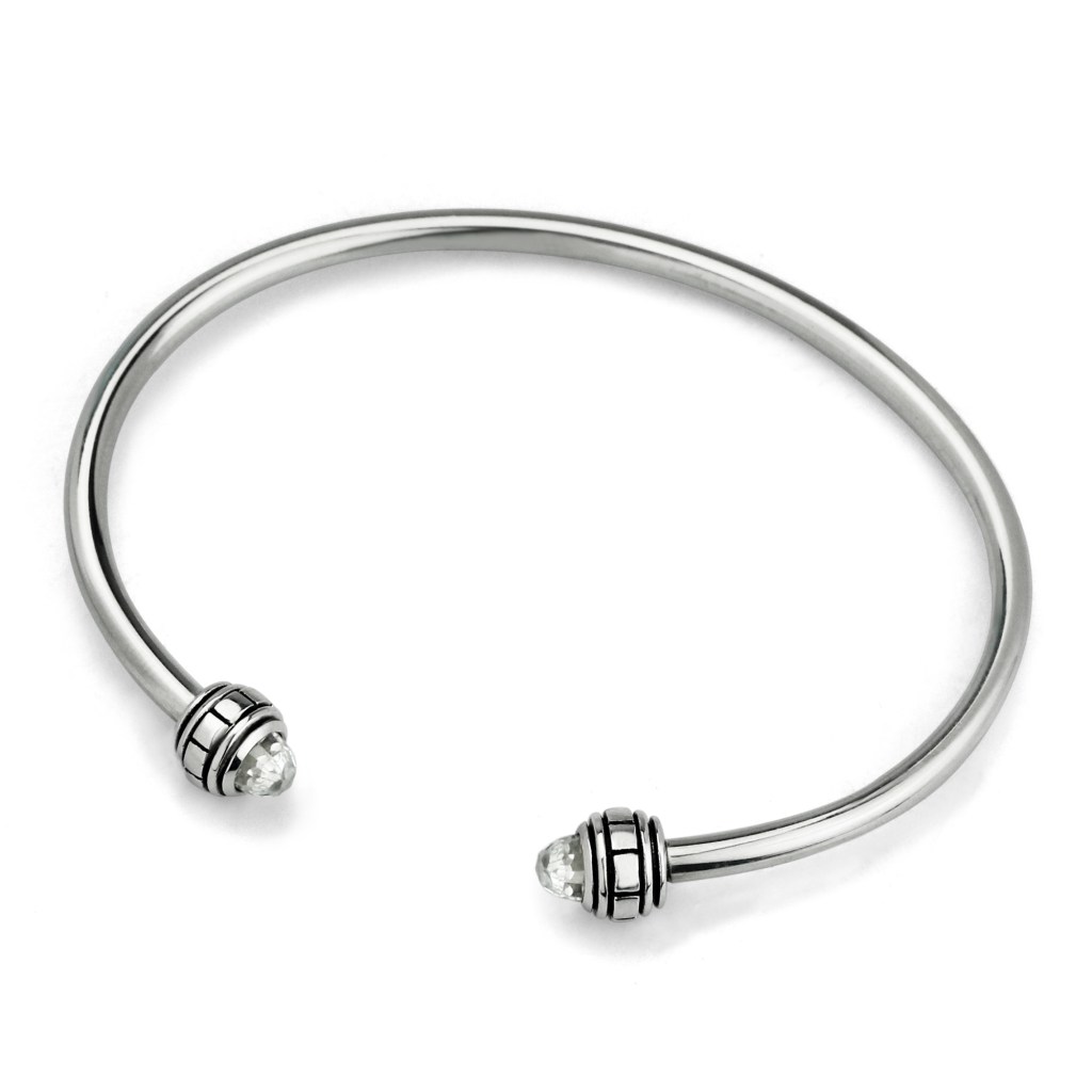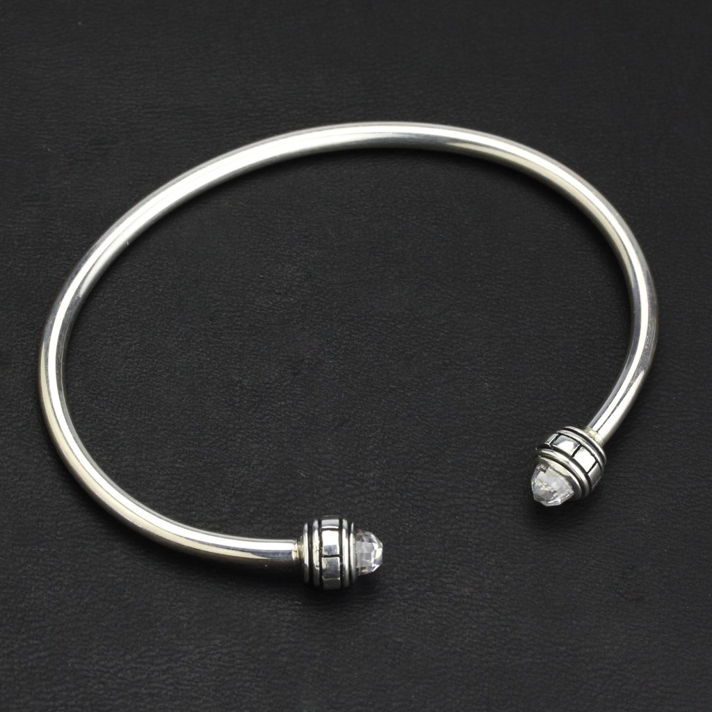 The OHM C BANGLE is an open bangle with end caps studded with colored CZ or stone. The caps unscrew to allow you to load up the bracelet design of your choice. An open “C” shape the bangle is slightly adjustable, and quite rigid. Choose SMALL if you wear a 6.7″ (17cm) or smaller and Choose MEDIUM if you wear an 7.1” (18cm) or larger. Available in multiple colors.