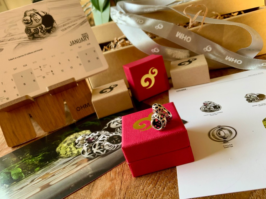 We are entering Year Of The Snake and OHM made a beautiful open worked snake holding a garnet coloured CZ crystal in it’s mouth!