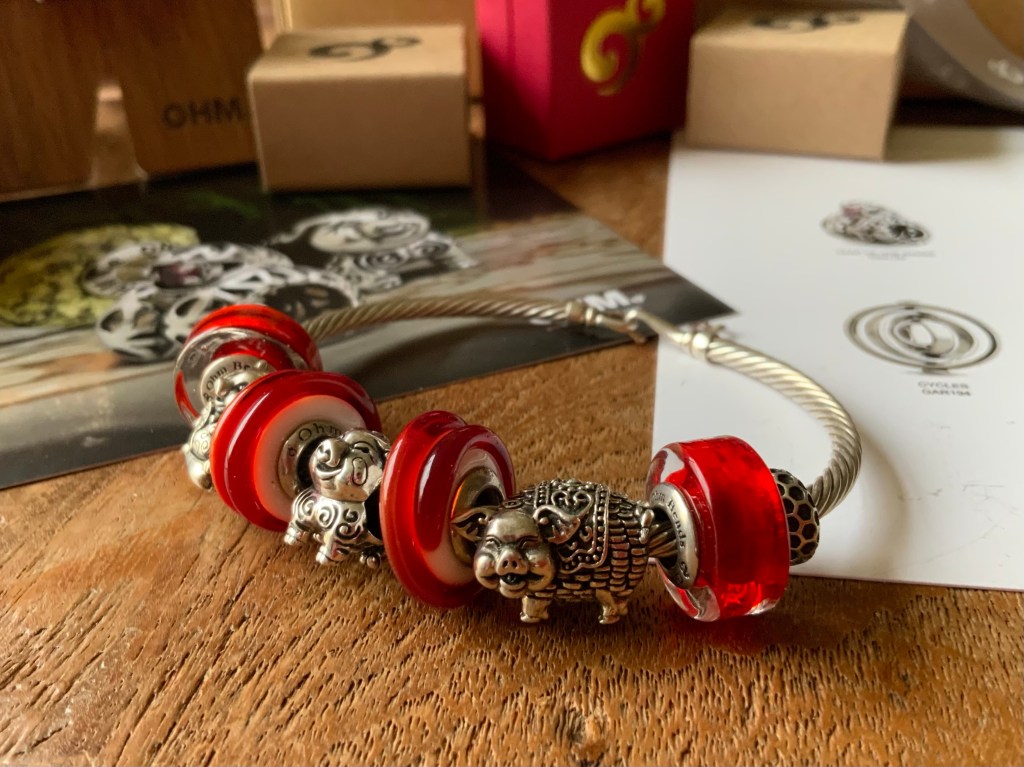 They are joined together for a colourfull new year’s bracelet with Secred Crush, Year Of The Snake, Candy Apple, May Spinner, Spiritual Awakening, Candy Apple, August Spinner, Bank Of Bravery and Admirer.