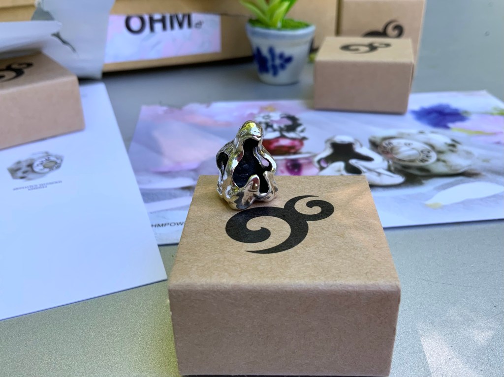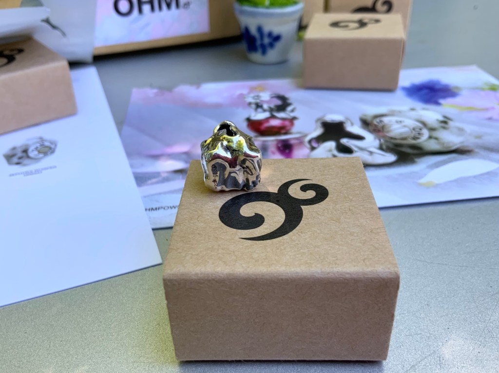 This is Love Wheel. A rather new concept by OHM. It is the shape of their signature glass beads but in silver.