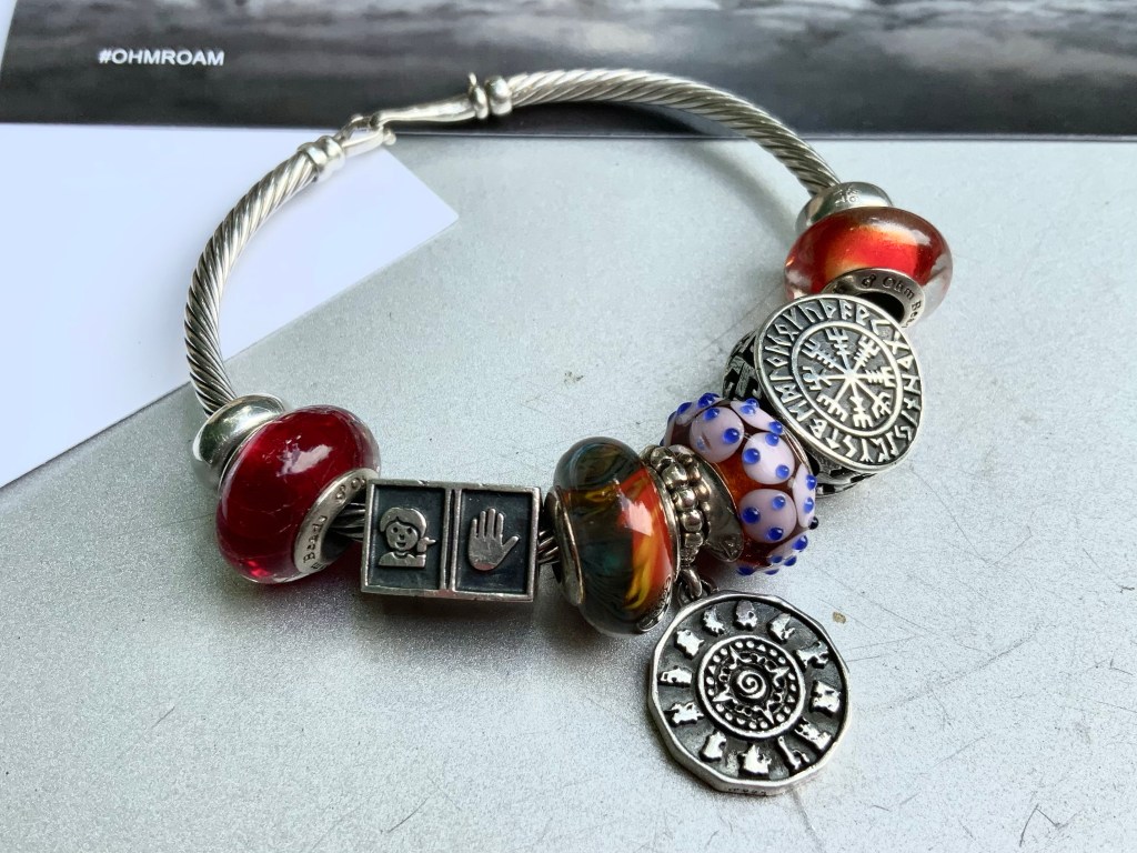 Here are beads with icons, centuries apart and different parts of the world. But I believe they have so much in common taking a closer look! Those icons are all designed to deliver messages and stories. A bangle with Broken Heart, Beadmail no. 4, OHMnique, Beadmail no. 26 Count Of Days, Tropical Island, Vegvisir’s Guidance and Skyfire.