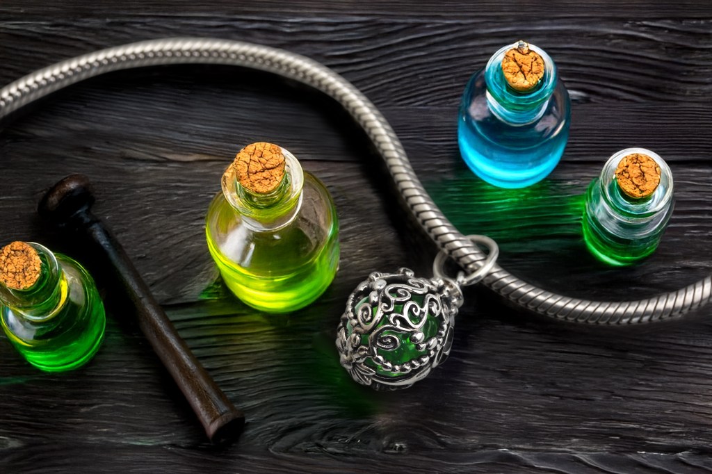Immortal Juice is more than a bead—it is a breath of magic, a whisper from the past, a potion of dreams cradled in silver. It holds the essence of forgotten spells and secret elixirs, wrapped in the embrace of delicate vines and woven metalwork. A five-pointed star sits atop, a guardian of mysteries, securing the life force within—a deep green core that seems to swirl with untold stories. A relic, a fragment of alchemy, a token of something that lingers beyond time.