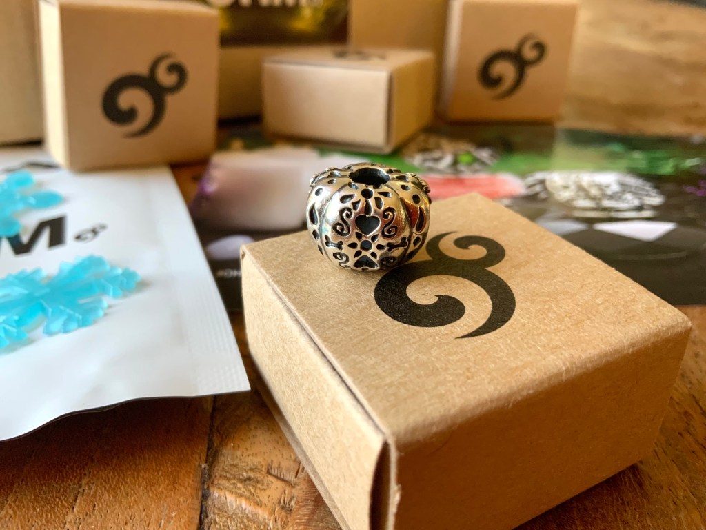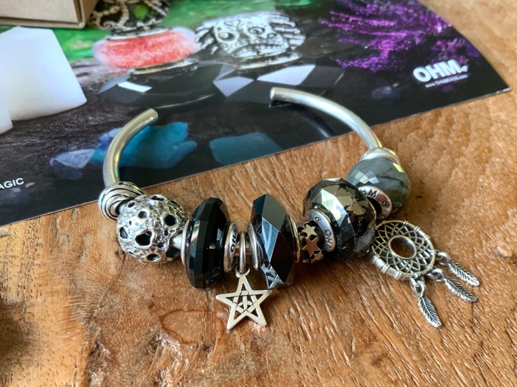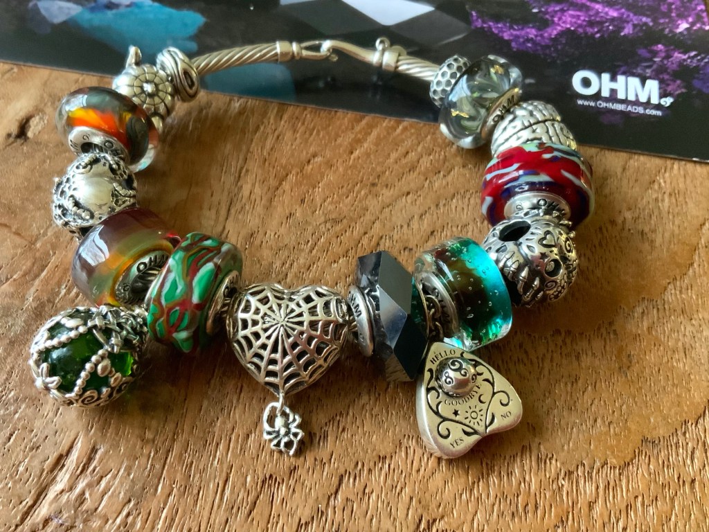 A more filled up autumnal feel bangle with Pumpkin Spice Pot, OHMnique, Rotten Heart, Sunset, Immortal Juice, Marley, Love Trap, Midnight Mirror, Planchette on OHM Ball, Poisoned Apple, Inner Ghoul , Mae Nak, Reason And Feeling and Autumn Glimmers.