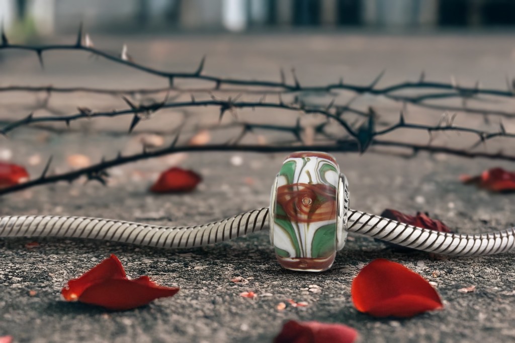 Crafted with care, each piece tells a story of nature’s quiet resilience. The interplay of floral and vine speaks of love enduring through time, of moments cherished and memories preserved. A bead for dreamers, wanderers, and those who find poetry in petals and thorns alike.