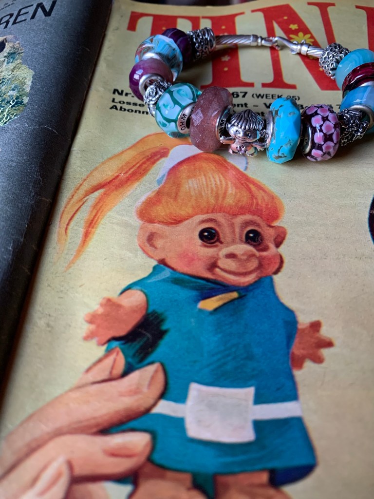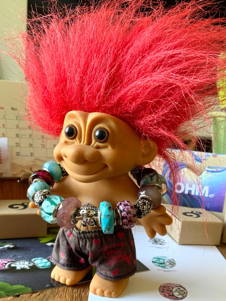 Starting with Treasured Trolls, a favourite childhood toy, born in the sixties and formed perfectly into a sweet silver bead with a colourful star in his belly! There are different coloured stars so this is a blind bag release. He has such a cute nose, hair and bum!